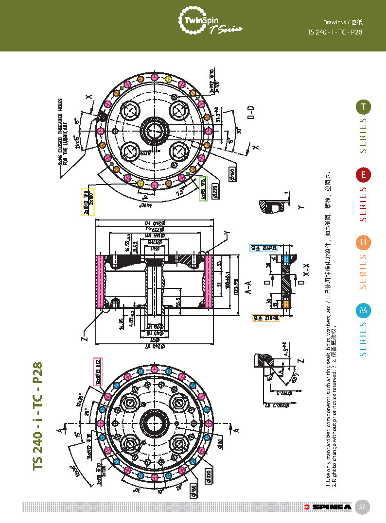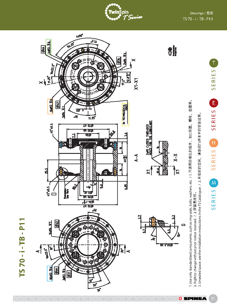 T 系列是帶有圓柱形殼體的Twinspin高精度減速機(jī)應(yīng)用范圍最廣的形式。 該系列內(nèi)部包含精密減速機(jī)構(gòu)和高強(qiáng)度交叉滾子軸承,又名“軸承式減速機(jī)”。這種設(shè)計(jì)可以把負(fù)載直接安裝在減速機(jī)輸出法蘭上,省去輸出端的額外軸承。 T系列采用模塊化設(shè)計(jì),允許用戶通過電機(jī)法蘭的方式連接各種電機(jī)。 標(biāo)準(zhǔn)的T系列減速機(jī)為半密封狀態(tài);需要用輸入法蘭和墊圈密封。SPINEA可根據(jù)客戶電機(jī)結(jié)構(gòu)提供全密封帶輸入法蘭的減速機(jī)。