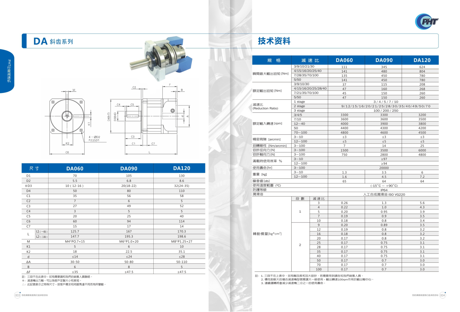 DA 系列是斜齒輪高精度減速機(jī)。 品宏減速機(jī)的軸承是用NSK品牌的,齒輪經(jīng)過(guò)碳化,故精度和剛性都比較優(yōu)越!減速機(jī)出力軸是可根據(jù)客戶(hù)的要求去定制大小和長(zhǎng)短的。