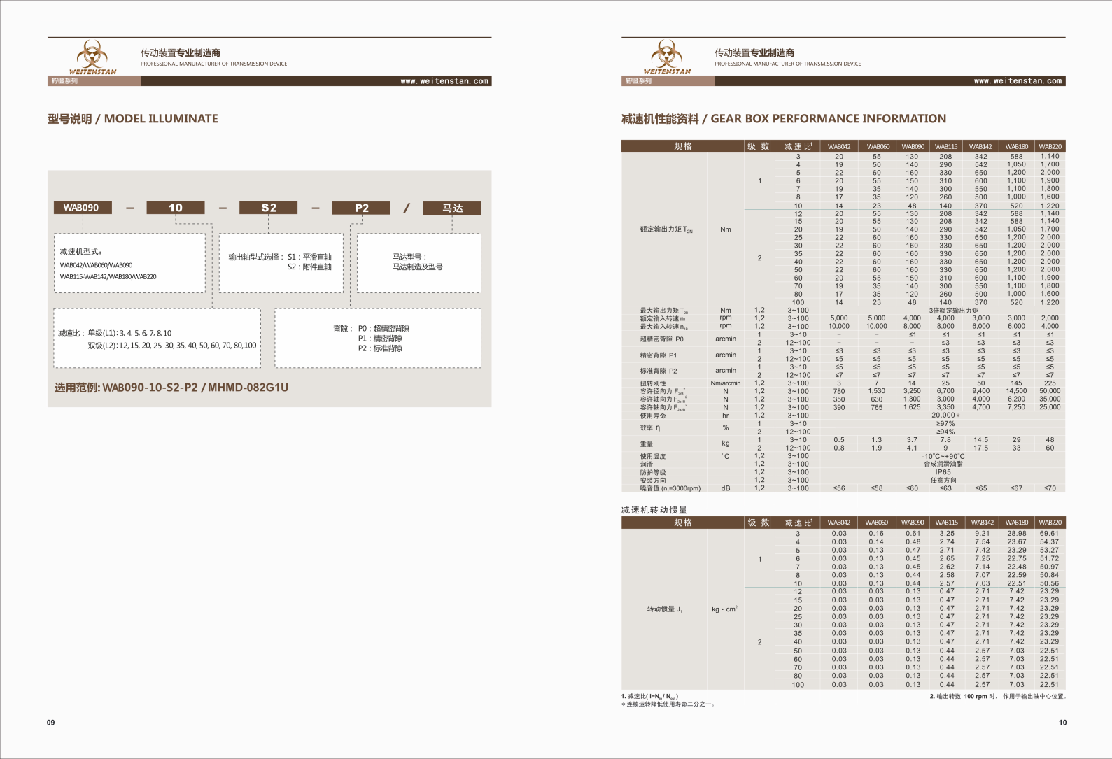 WAB系列機器人專用RV減速機。 齒輪材料采用優(yōu)質合金鋼,經(jīng)碳-氮共滲處理,從而獲得最佳的耐磨性和耐沖擊韌性。 利用ANSYS技術對齒輪強度進行有限元分析,同時對齒面形及導程修整,以減低齒輪嚙合的沖擊和噪音,增加齒輪系的使用壽命。 輸出行星架采用一體式(雙支撐)的結構設計,前后軸承大跨距分布箱體內,形成穩(wěn)定的一體式結構,以確保較高的扭轉剛性和精度。 齒圈與輸出殼體采用一體化設計,采用優(yōu)質鋼材,經(jīng)熱鍛成形,從而獲得較高的材料密度。一體化設計能確保所有幾何尺寸一次性加工完成,與其它內嵌式、夾裝式等結構相比具有更高的精度和強度。 輸入軸與鎖緊裝置采用一體化設計,雙螺栓對稱分布,達到動平衡的同時,通過雙螺栓的強力鎖死,有效防止電動軸傳動打滑,實現(xiàn)高精度零背隙的動力傳送。