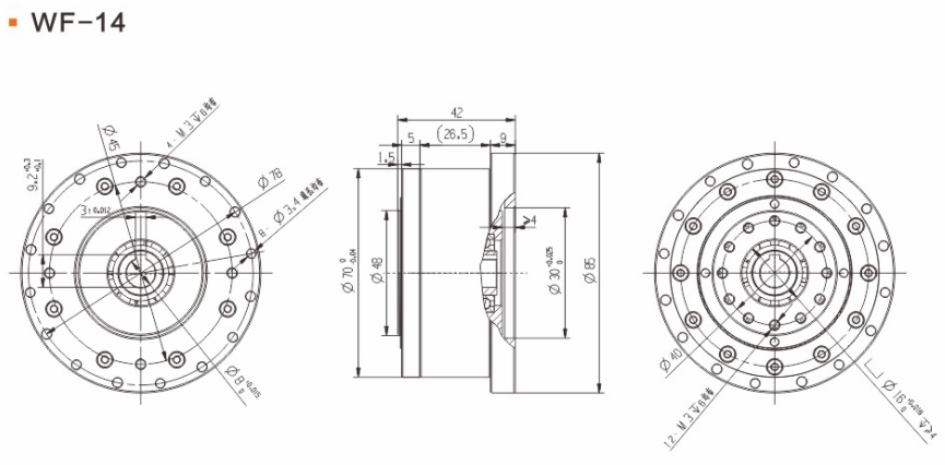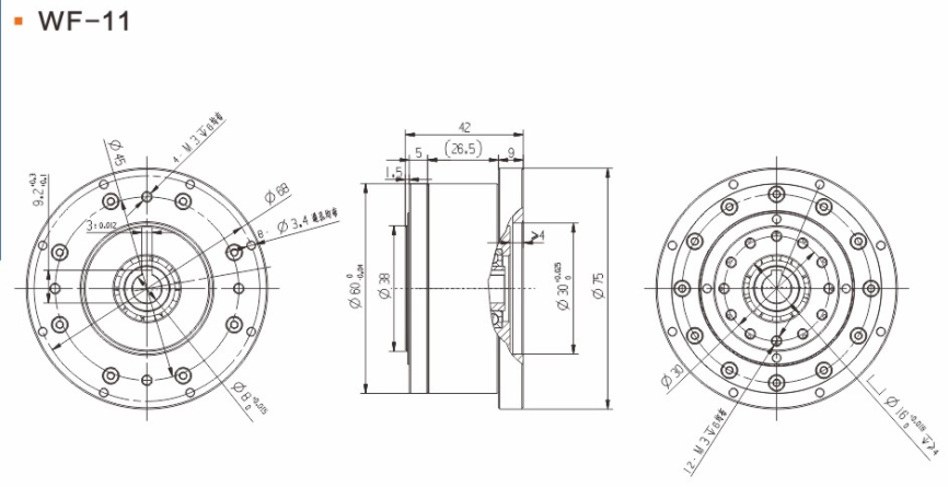 具有傳動效率高、工作平穩(wěn)、噪聲低、結(jié)構(gòu)緊湊、重量輕、體積小、使用可靠、壽命長、減速比范圍大等優(yōu)點。 輕量流線型設(shè)計、鋼質(zhì)本體、機型輕薄短小、體積比傳統(tǒng)行星式減速器大幅縮小、可節(jié)省安裝空間。 真圓齒形、齒腹大、抗壓性強、不干涉不崩齒、可承受頻繁正逆轉(zhuǎn)和瞬間急停慣性沖擊。 雙排結(jié)構(gòu)、負(fù)載分散、機理平衡、圓形齒輪設(shè)計、磨損小、噪音和溫升要比其他減速器低。 線接觸傳動、摩擦系數(shù)小、效率高、出力扭矩大、慣量低、是一種精密的剛性傳動,剛性傳動軌跡也最接近理想工作曲線,這和部分原件使用滾動件的擺線式或和諧式傳動設(shè)計有些許不同。 由于雙共軛工作曲線和撓性軸銷輸出裝置的改良設(shè)計、本機高精度背隙可控制在弧秒范圍。 長效性油脂潤滑、不需要保養(yǎng)、安裝方向不受限。 人力方式有筒夾緊式和鍵槽式供選用。