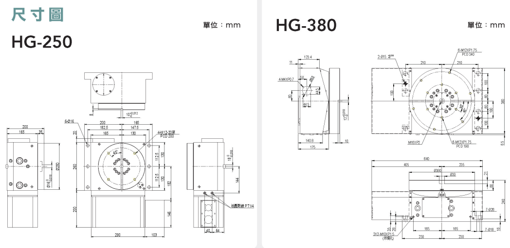 HG臥式分度盤 臥式分度盤(平轉(zhuǎn)臺)是銑床的主要附件之一,可用在銑床上進(jìn)行分度鉆孔和銑削、圓周切削、曲面加工、平面及部分線段的直線加工工作。每個(gè)規(guī)格的轉(zhuǎn)臺分別提供連接不同卡盤的法蘭盤,作為特殊訂貨,并將法蘭盤獨(dú)立包裝。 使用方法: 1)使工件繞本身軸線進(jìn)行分度(等分或不等分)。如六方、齒輪、花鍵等等分的零件。 2)使工件的軸線相對銑床工作臺臺面扳成所需要的角度(水平、垂直或傾斜)。因此,可以加工不同角度的斜面。 3)在銑削螺旋槽或凸輪時(shí),能配合工作臺的移動使工件連續(xù)旋轉(zhuǎn)。